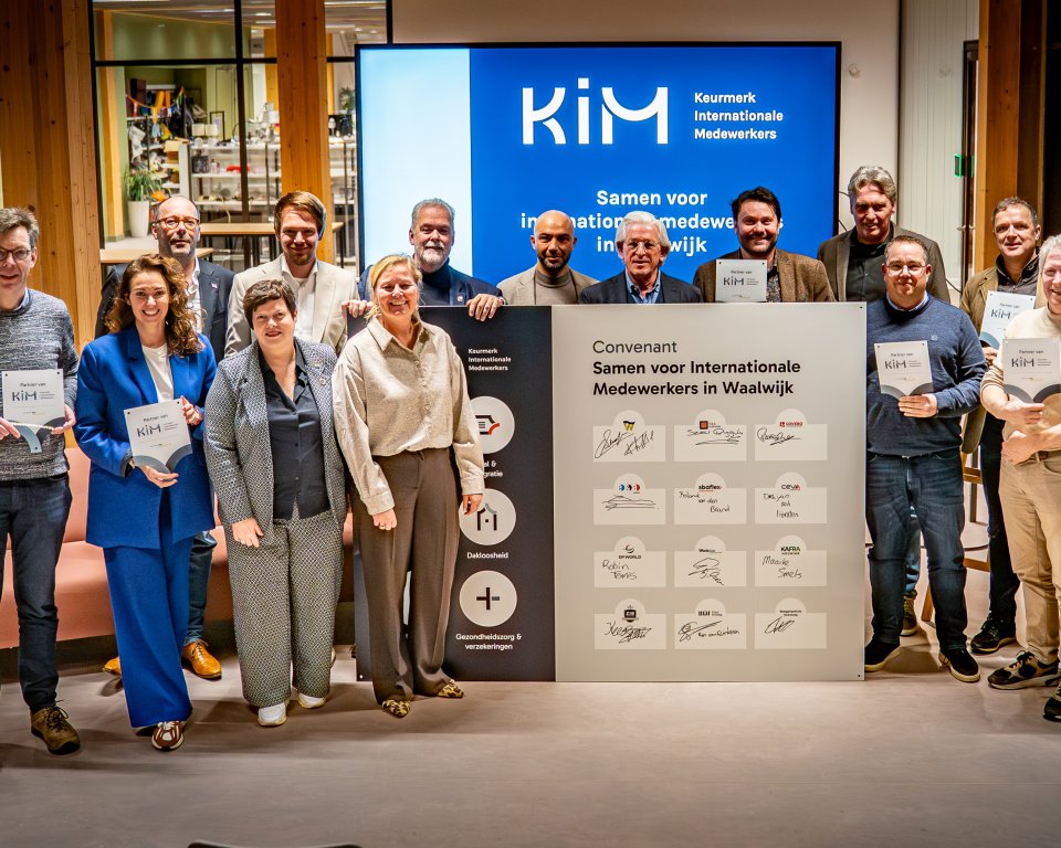 De eerste partners ontvingen het Keurmerk Internationale Medewerkers (KIM). Een zichtbaar bewijs dat zij verantwoordelijkheid nemen voor goede woon-, werk- en leefomstandigheden van internationale medewerkers. Waalwijk is de eerste gemeente in Nederland met een convenant en keurmerk voor internationale medewerkers. Het convenant legt afspraken vast over het wonen, werken en leven van internationale medewerkers in Waalwijk. Zo is er afgesproken dat er een goede ondersteuning en informatievoorziening komt. Ook Nederlandse taalles en het voorkomen van dakloosheid is onderdeel van de afspraken. Een snellere registratie van gegevens moet zorgen voor een goede inschrijving bij de gemeente. Deelnemers dragen financieel bij om deze afspraken ook uit te voeren. De afspraken die in het convenant vastliggen gelden t/m 31 december 2027. Lees verder>