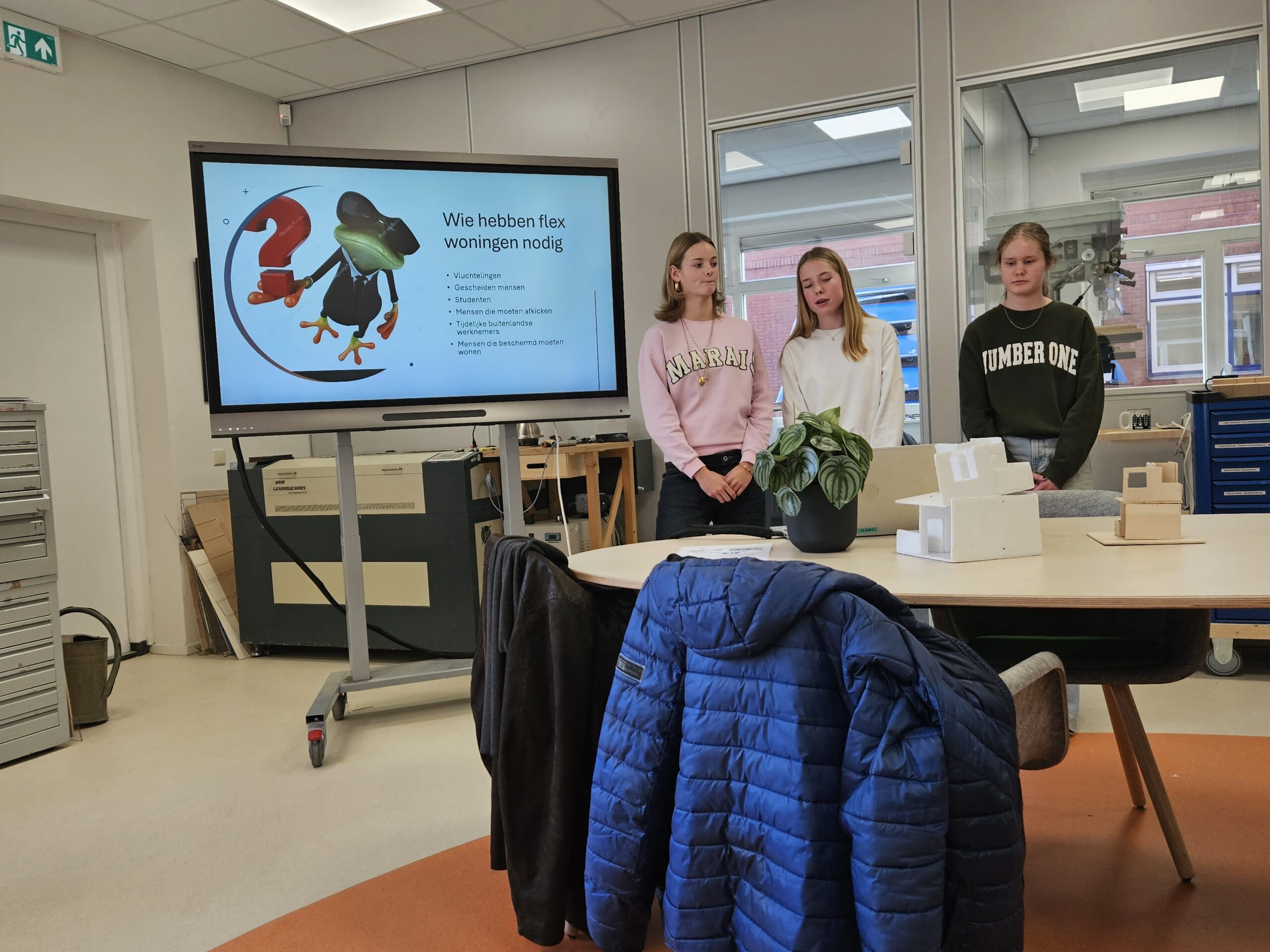 Deze week presenteerden de leerlingen hun resultaten en verrasten de opdrachtgevers met mooie analyses en ontwerpen. Geweldig hoe zij hadden nagedacht over de woonwensen van de doelgroep en de betaalbaarheid. En zeker ook over het technische ontwerp van de woningen en de plaatsing in een gebouw. Verrassend ook hoeveel locaties zij hadden gevonden waar je in hun stad prima zulke woningen zou kunnen neerzetten. Gemeenten en corporaties die denken geen plek voor zulke woningen te hebben zouden eens moeten weten…